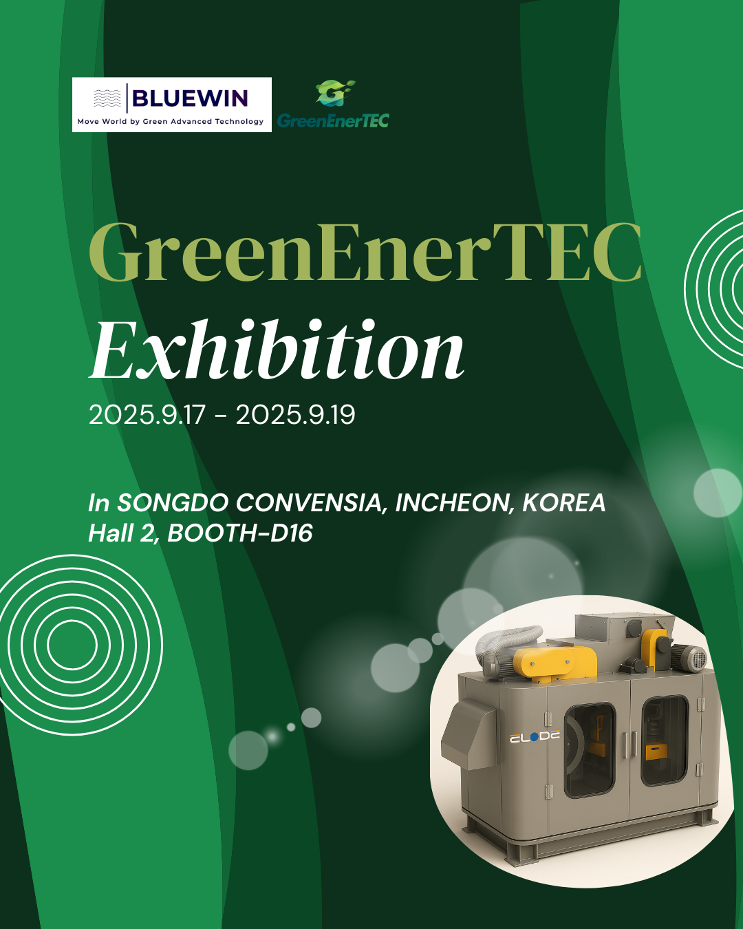 Join Bluewin at GreenEnerTEC Exhibition 2025, held at Songdo Convensia, Incheon, Korea (Hall 2, Booth D16) from September 17 to 19, 2025.